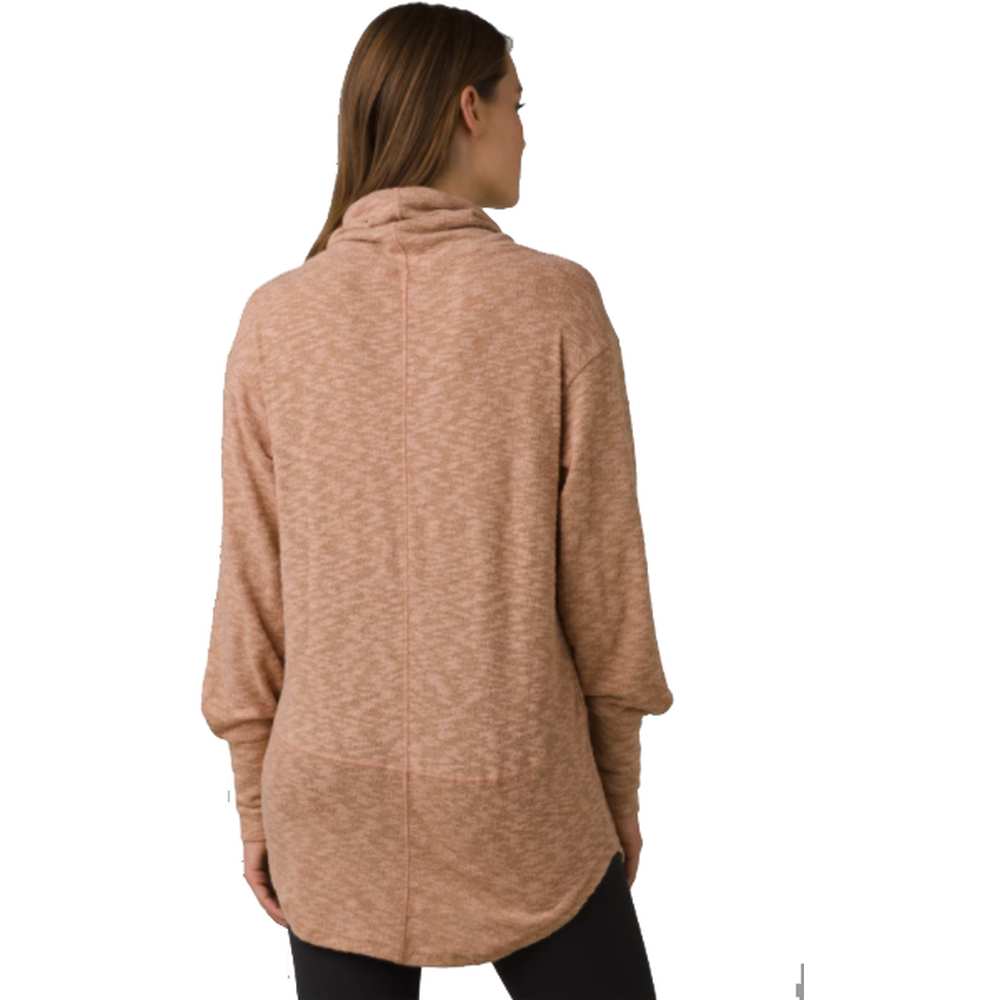 Turtle neck long sleeve pullover top with body seam detail and pouch pocket